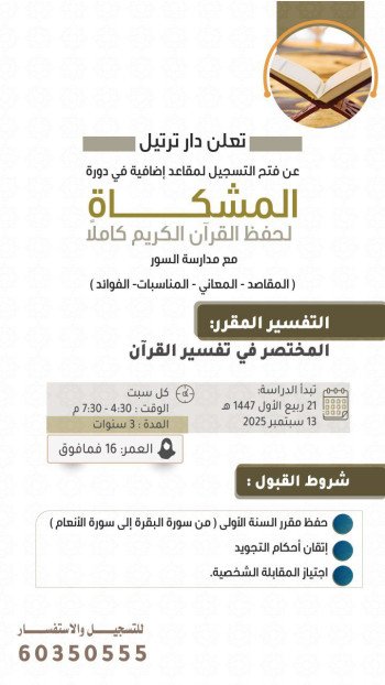 دورة المشكاة لحفظ القرآن الكريم كاملاً